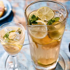 - Squeeze the lemon and lime slices over then drop them in, along with the mint.