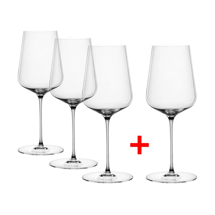 The Definition Universal glass is sold as a set of 2 glasses (pair) for £50.00. Spiegelau also offers a 4-pack for £75.00, which provides better value per glass if you're building a full set for entertaining. Since Universal is designed as your primary wine glass for all wine types, many people prefer the 4-pack to have enough glasses for dinner parties.